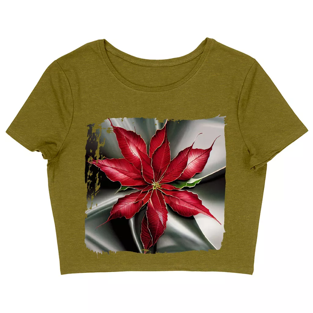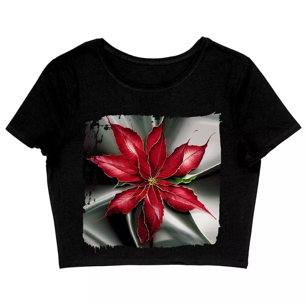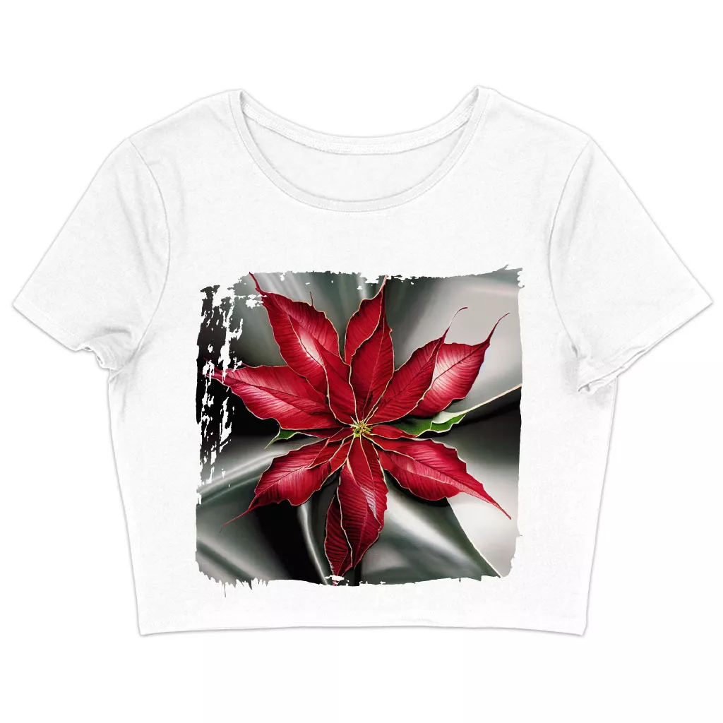 Poinsettia Christmas Women’s Cropped T-Shirt – Art Crop Top – Graphic Cropped Tee