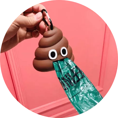 Have your waste bags always by your side neatly tucked away in this convenient storage bag in the form of a poop emoji, a cute little take on a modern solution.