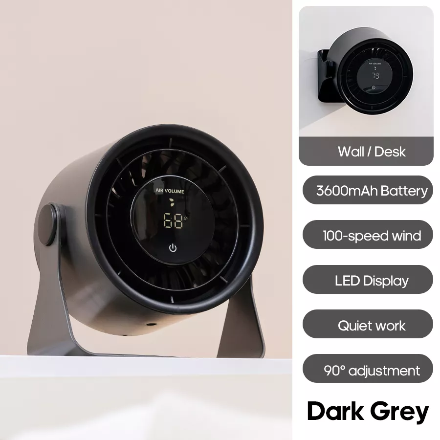 Whether you’re working from home, enjoying the outdoors, or dealing with a stuffy room, this Portable USB Rechargeable Desktop Fan is your go-to solution for personalized cooling. With a powerful 3600mAh battery, whisper-quiet operation, and 100 adjustable speed levels, this fan delivers ultimate comfort, no matter where you are. Designed for versatility, it doubles as both a table fan and a wall-mounted air circulator, making it perfect for offices, bedrooms, dorms, or even camping trips.