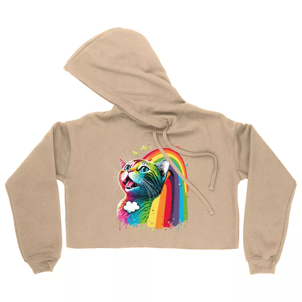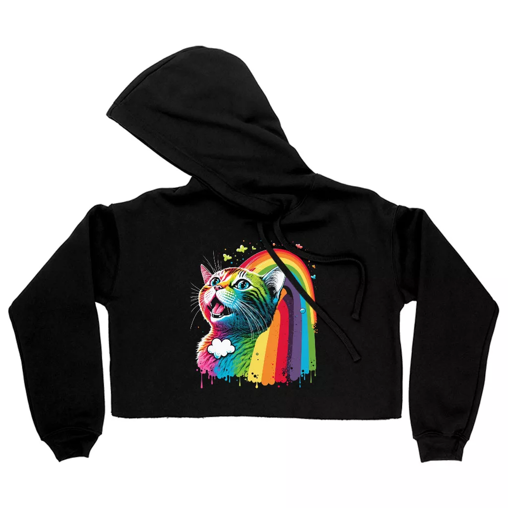 Rainbow Cat Women’s Cropped Hoodie – Colorful Cropped Hoodie – Cute Design Hooded Sweatshirt