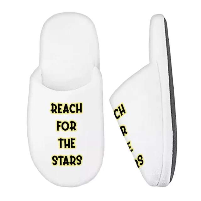 Reach for the Stars Memory Foam Slippers – Motivational Quote Slippers – Cool Slippers