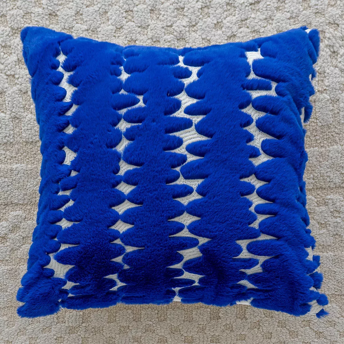 Royal Blue Jacquard Embroidered Plush Cushion Cover 18x18in