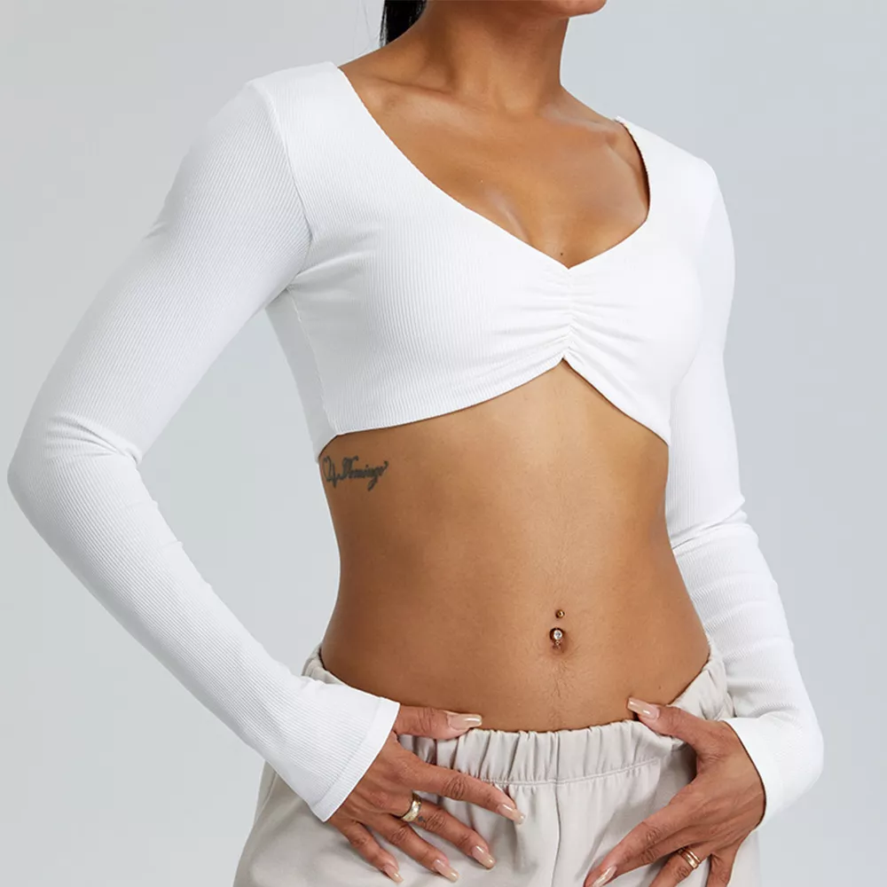 Crafted from a high-performance blend of 75% nylon and 25% spandex, this long sleeve shirt hugs your curves and enhances your silhouette with just the right amount of stretch. The ribbed texture adds a sleek, modern edge while offering breathability and a soft, second-skin feel. Its compressive fit and push-up design provide light support and a flattering lift, making you feel confident during every move.
