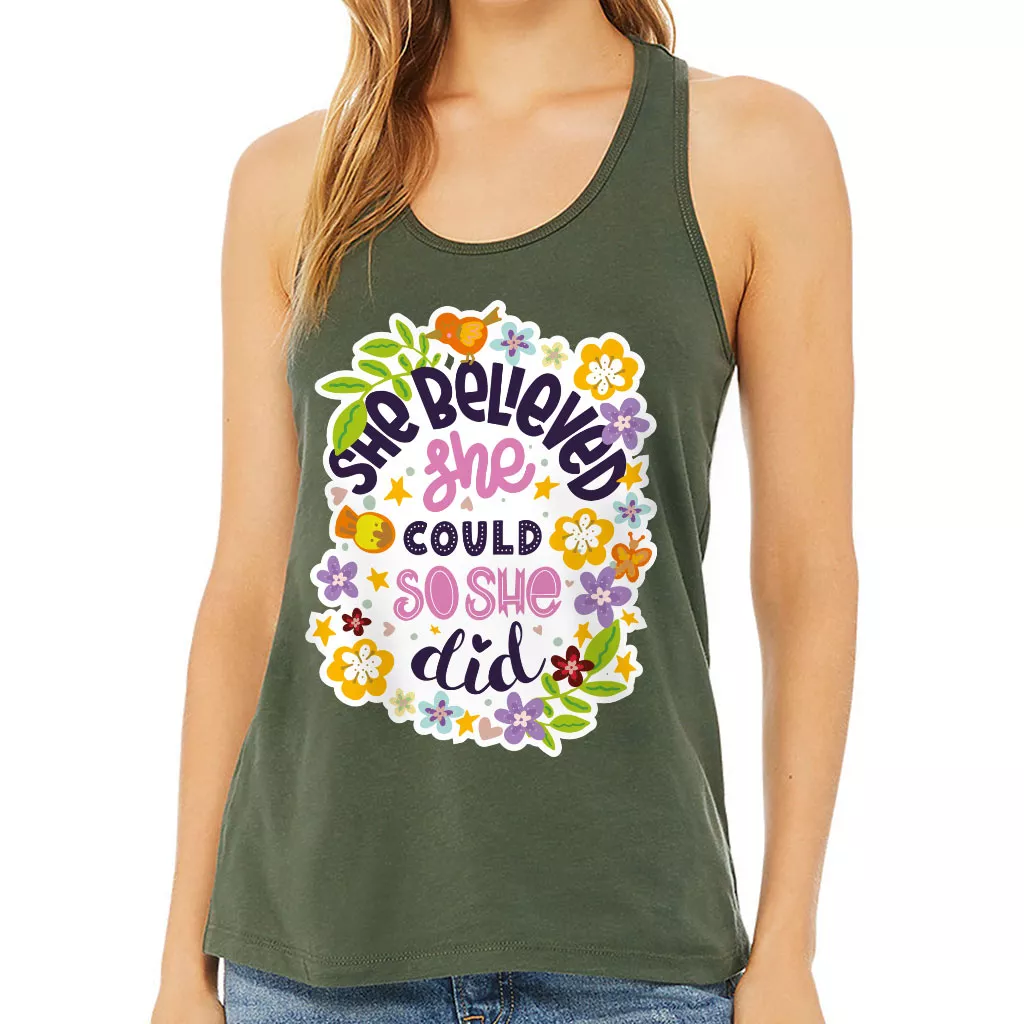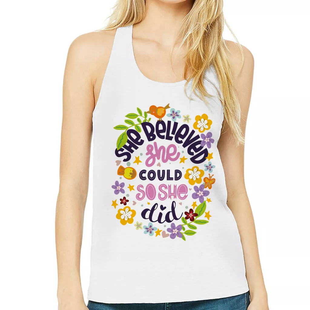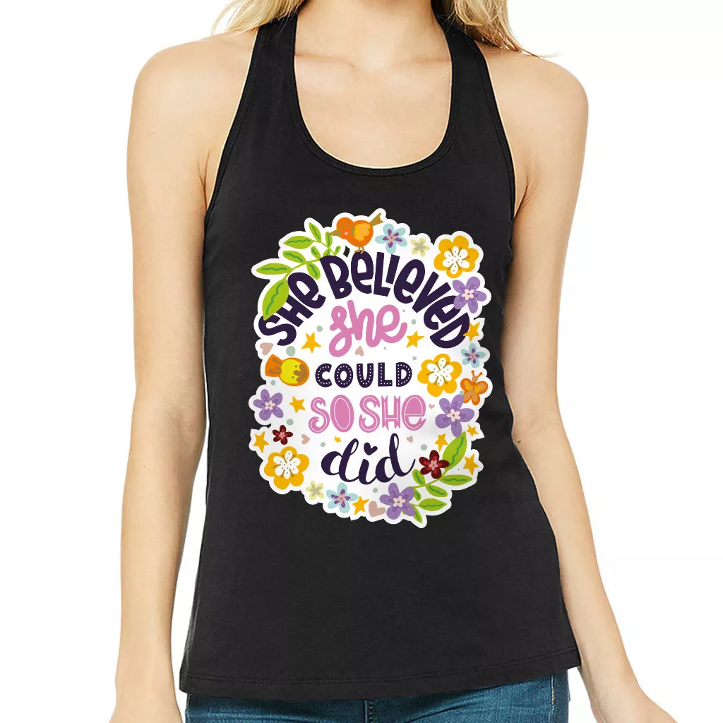 She Believed She Could So She Did Women’s Racerback Tank – Inspirational Tank Top – Printed Workout Tank