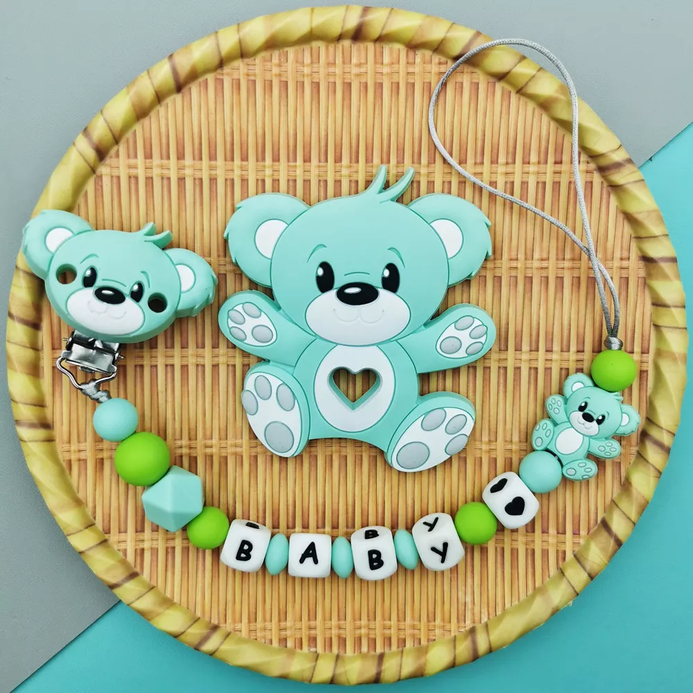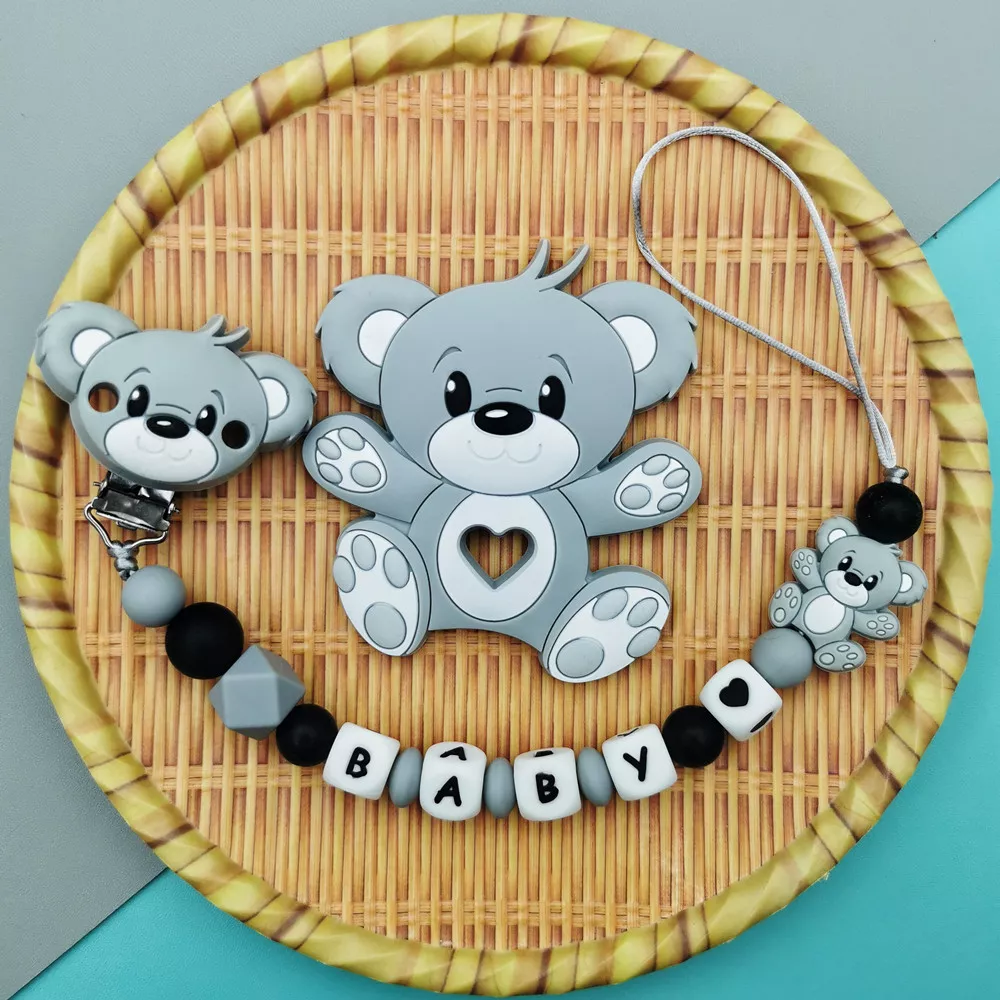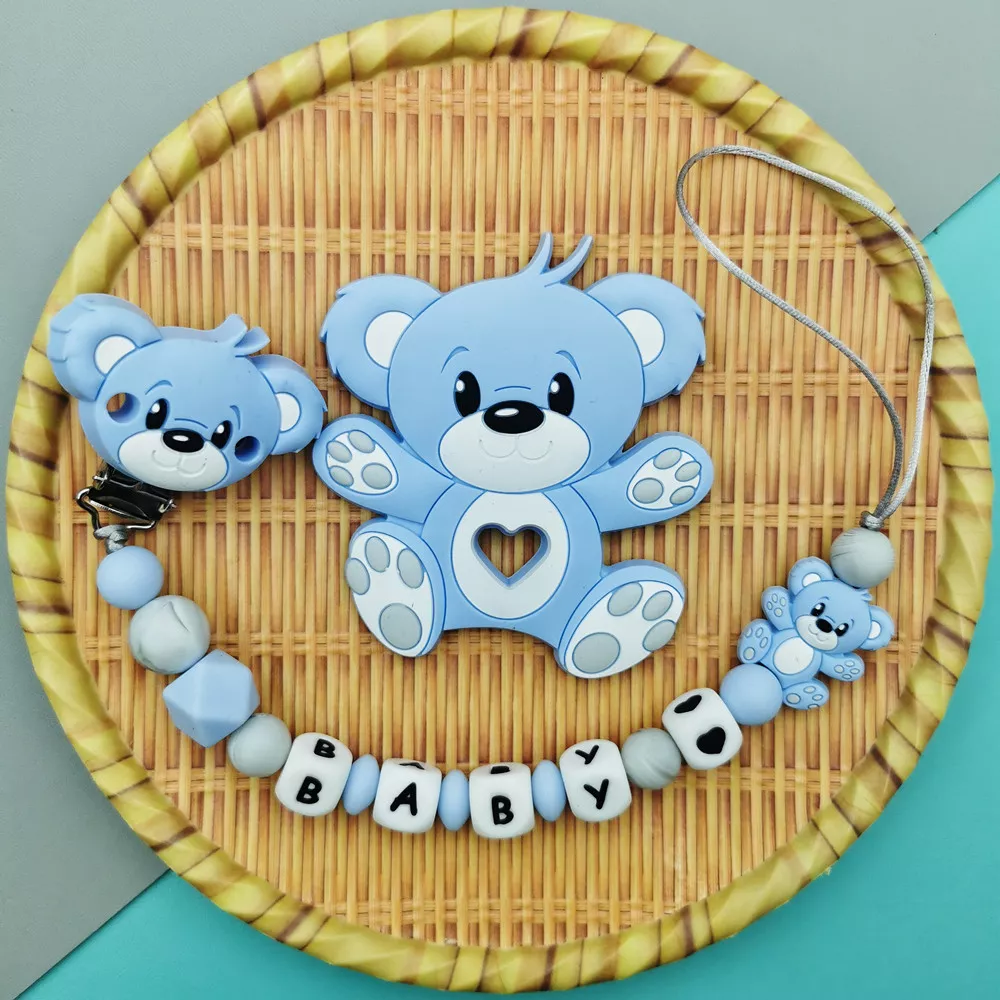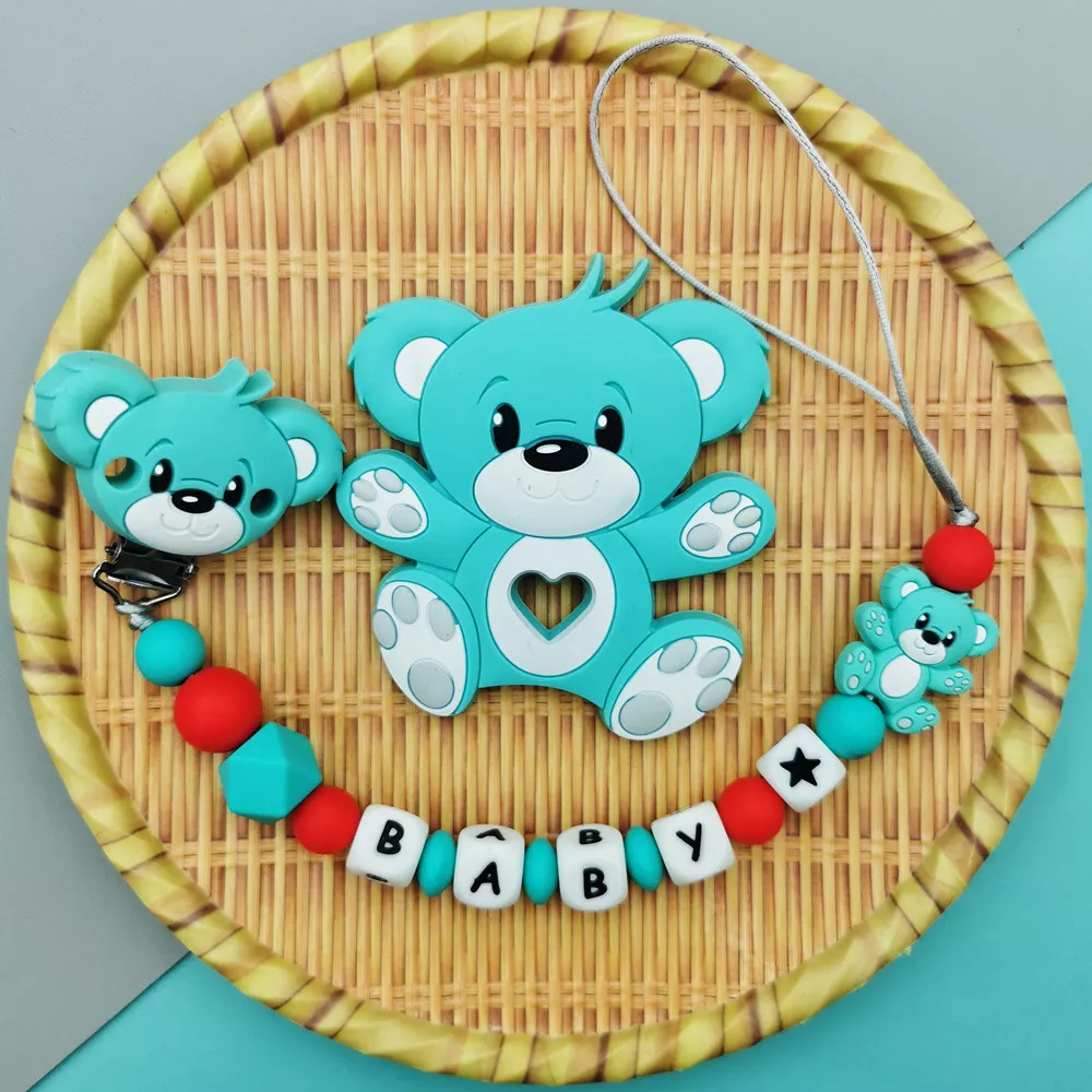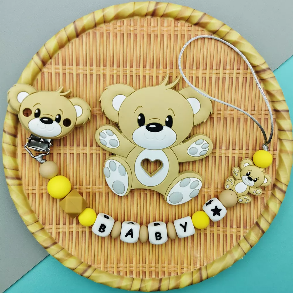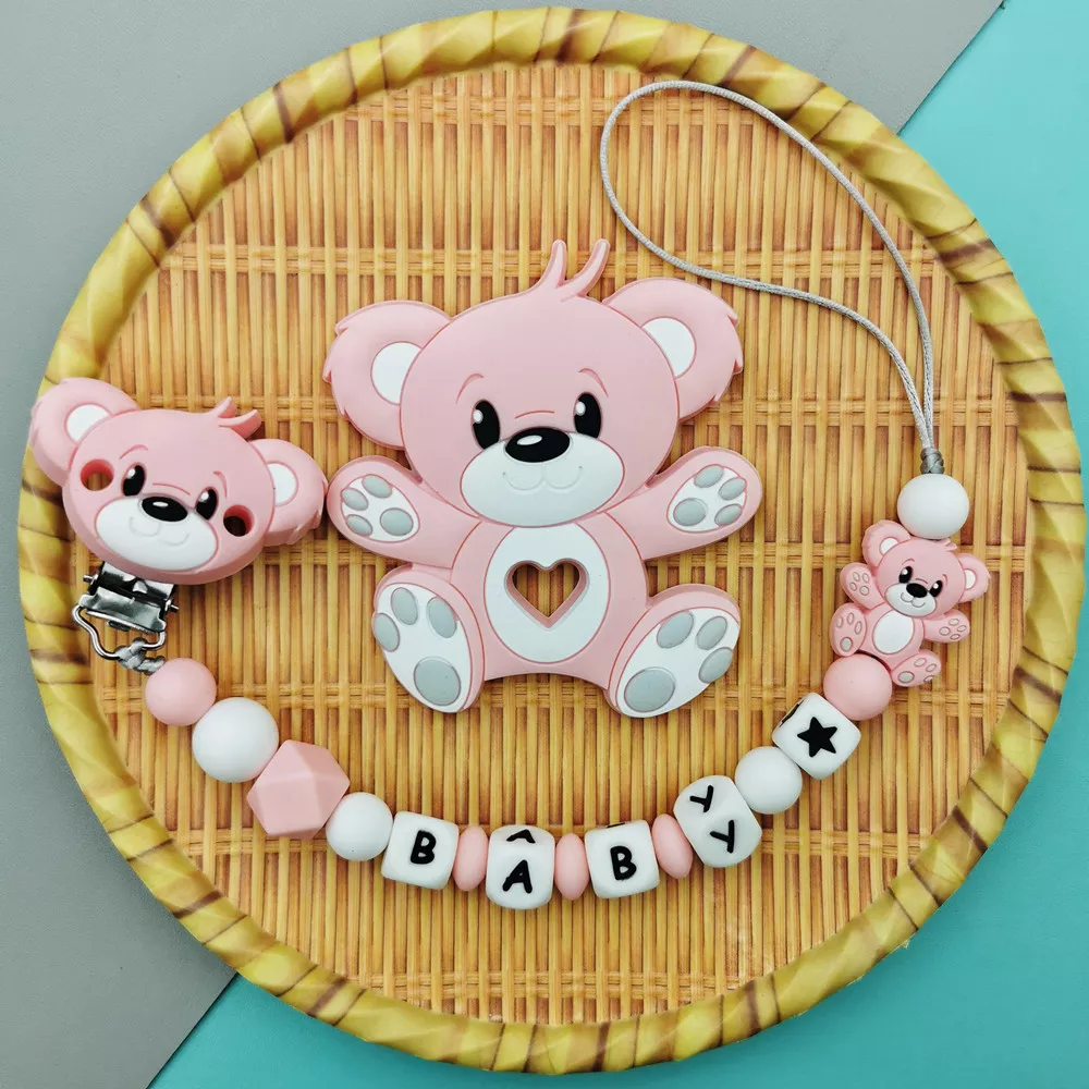 Silicone Baby Name Pacifier Clip with Cute Bear Teether Toy