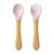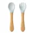 Silicone Baby Spoon & Fork Set – Safe Training Cutlery with Wooden Handles