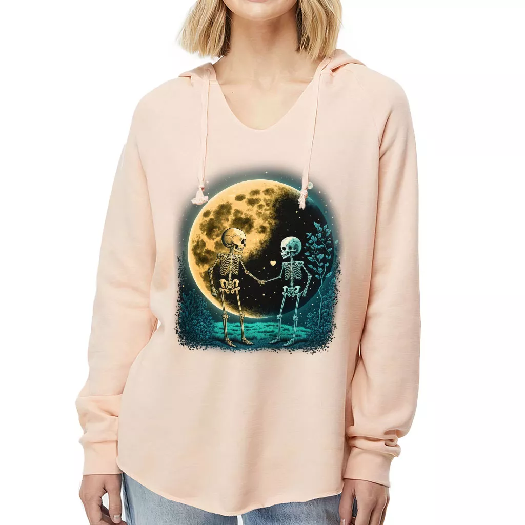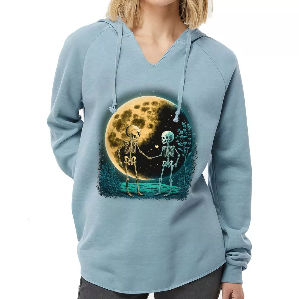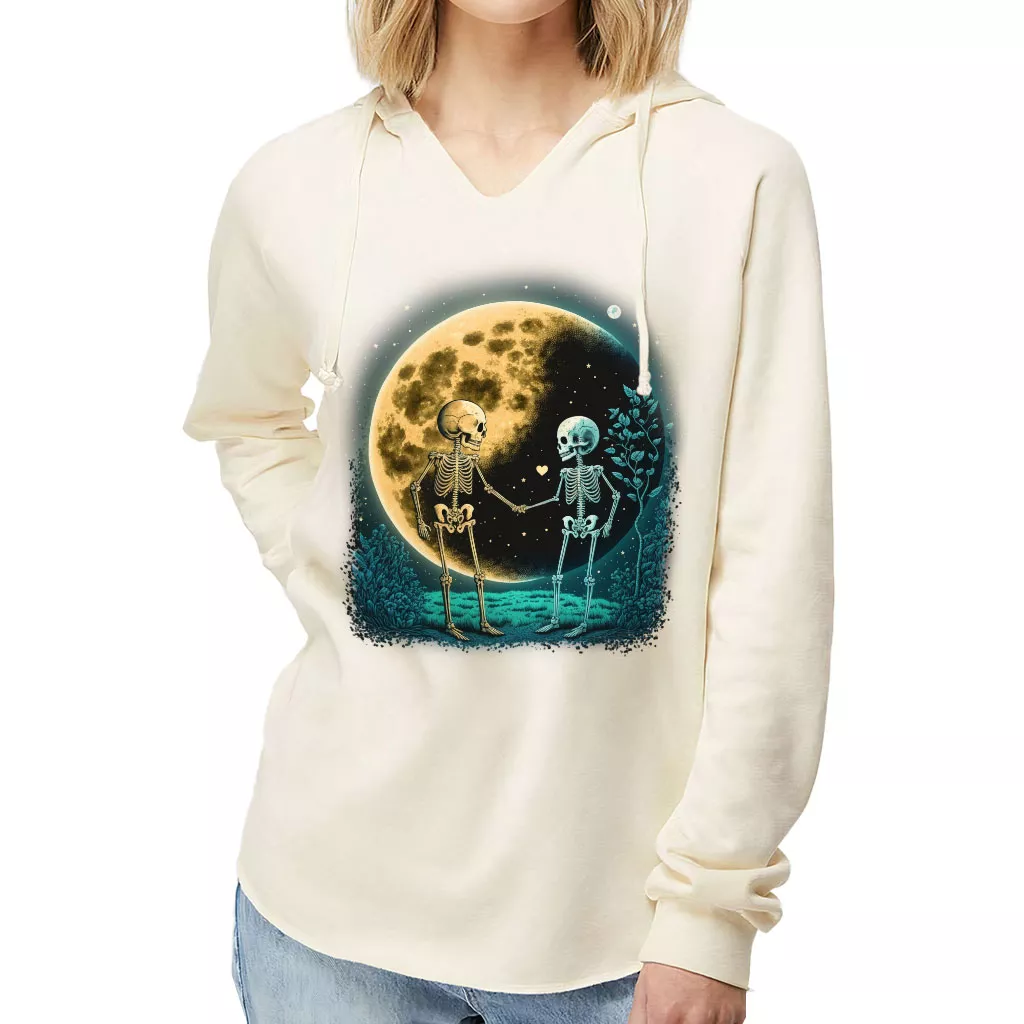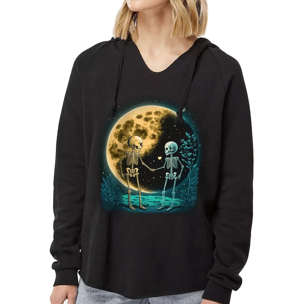 Skeleton Graphic Wave Wash Hoodie – Moon Print Hooded Sweatshirt – Cute Design Hoodie