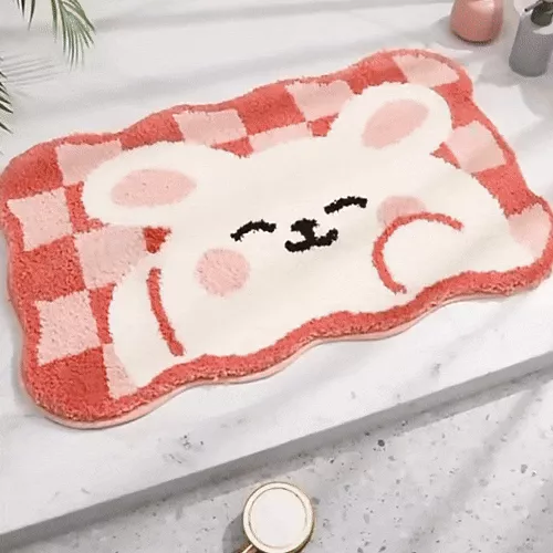 This mat is delightful, offering a thick, luxurious feel, and it washes wonderfully. I have it placed in front of my indoor bunny's litter box, surrounded by stuffed animals to create a cute environment for both of us. It's a solid 10 out of 10 in my eyes.