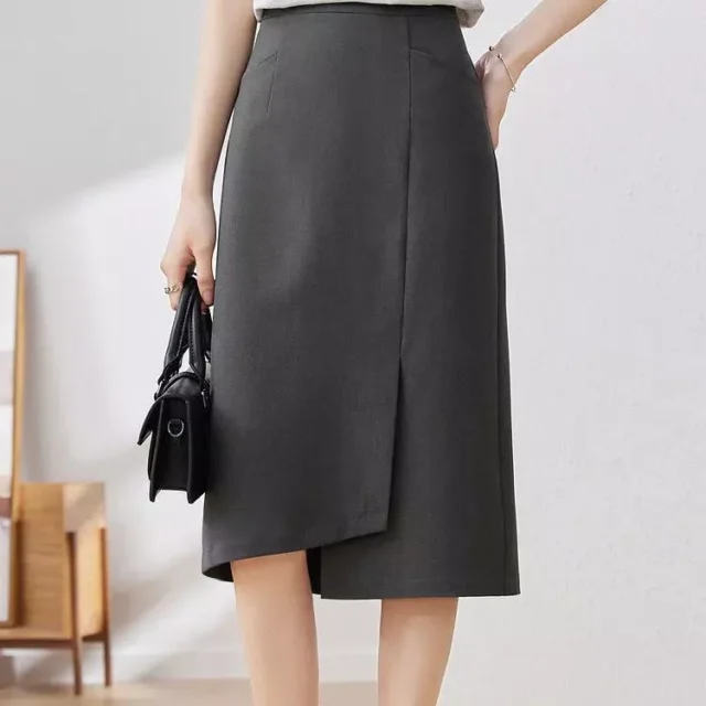Elevate your warm-weather wardrobe with this sleek and modern grey midi skirt, designed to blend sophistication with a touch of edge. Featuring a unique irregular front slit and a clean, high-waisted silhouette, this pencil skirt brings effortless confidence to your everyday style. Whether you’re headed to the office, a casual brunch, or an evening out, this skirt promises to keep you looking sharp and feeling cool all season long.