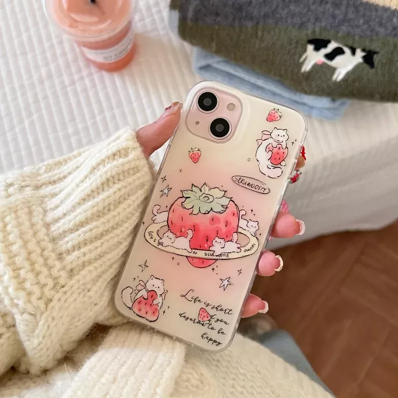 Strawberry Planet Kitten Cartoon Shockproof Soft iPhone Case