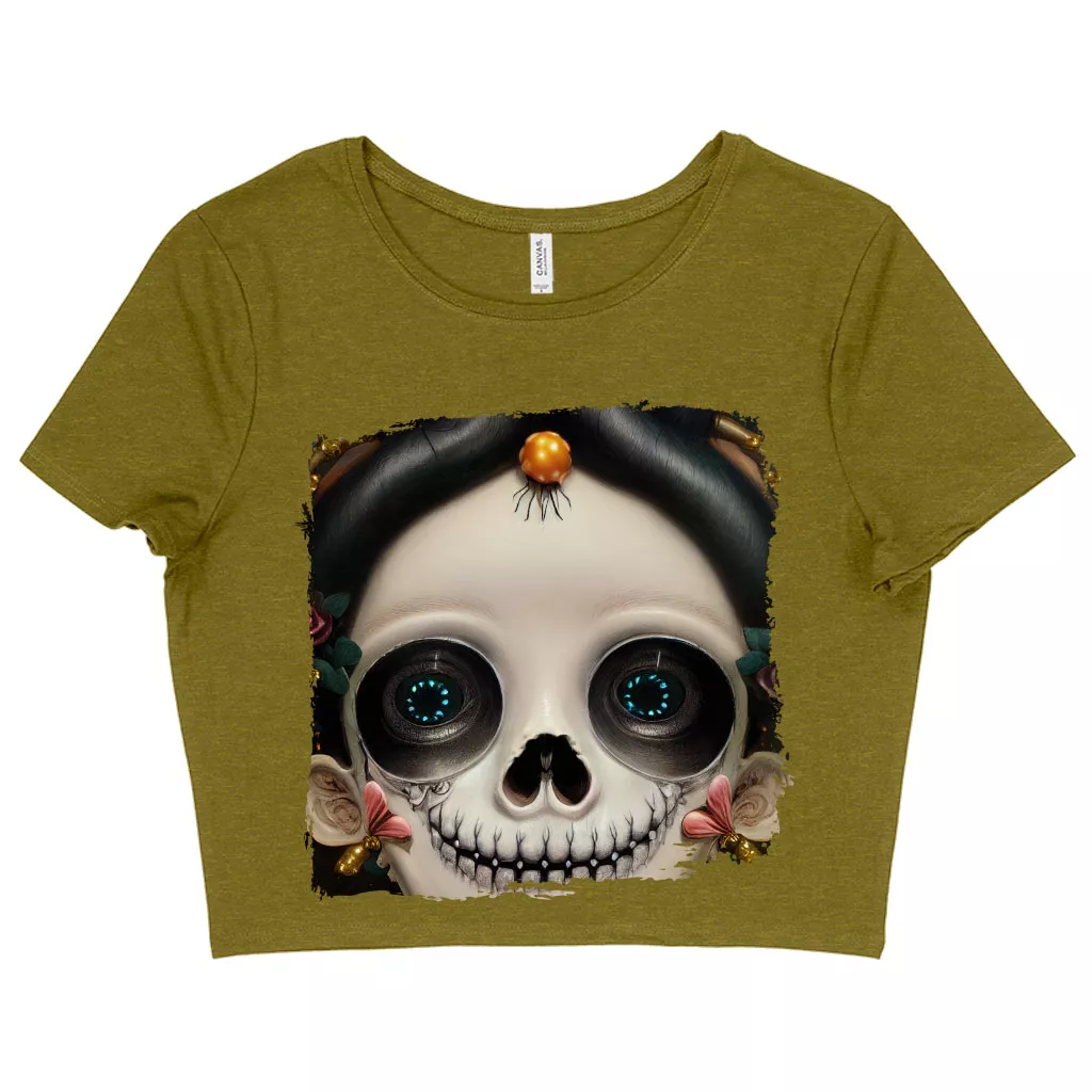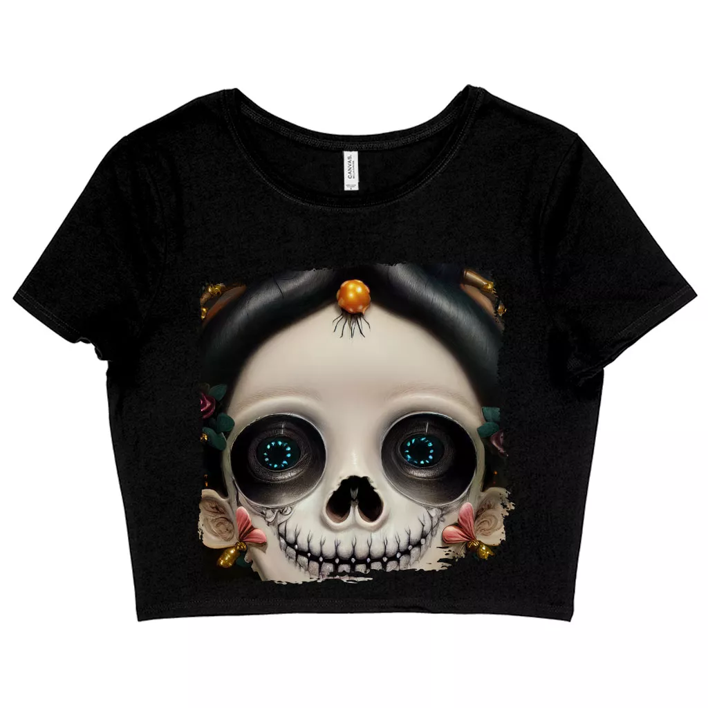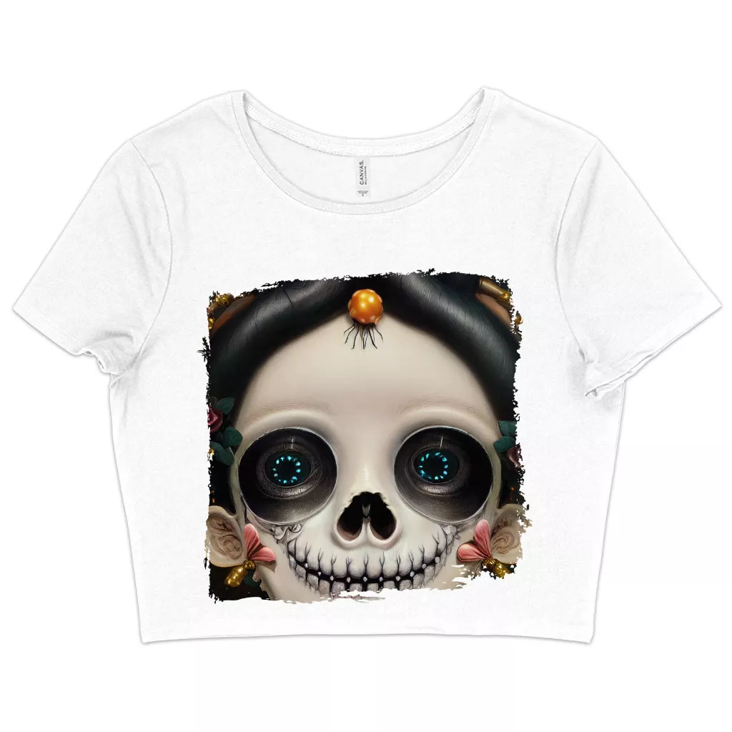 Sugar Skull Women’s Cropped T-Shirt – Floral Crop Top – Skeleton Girl Crop Tee Shirt