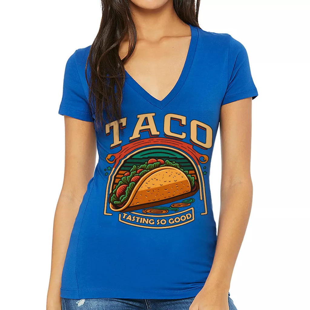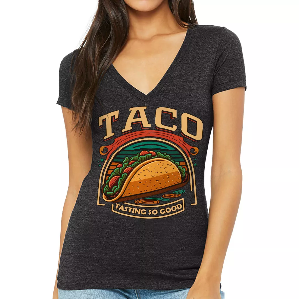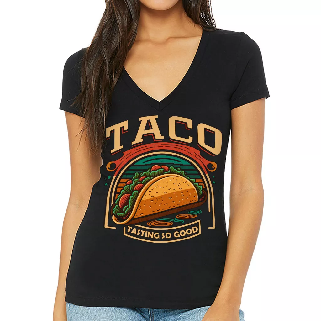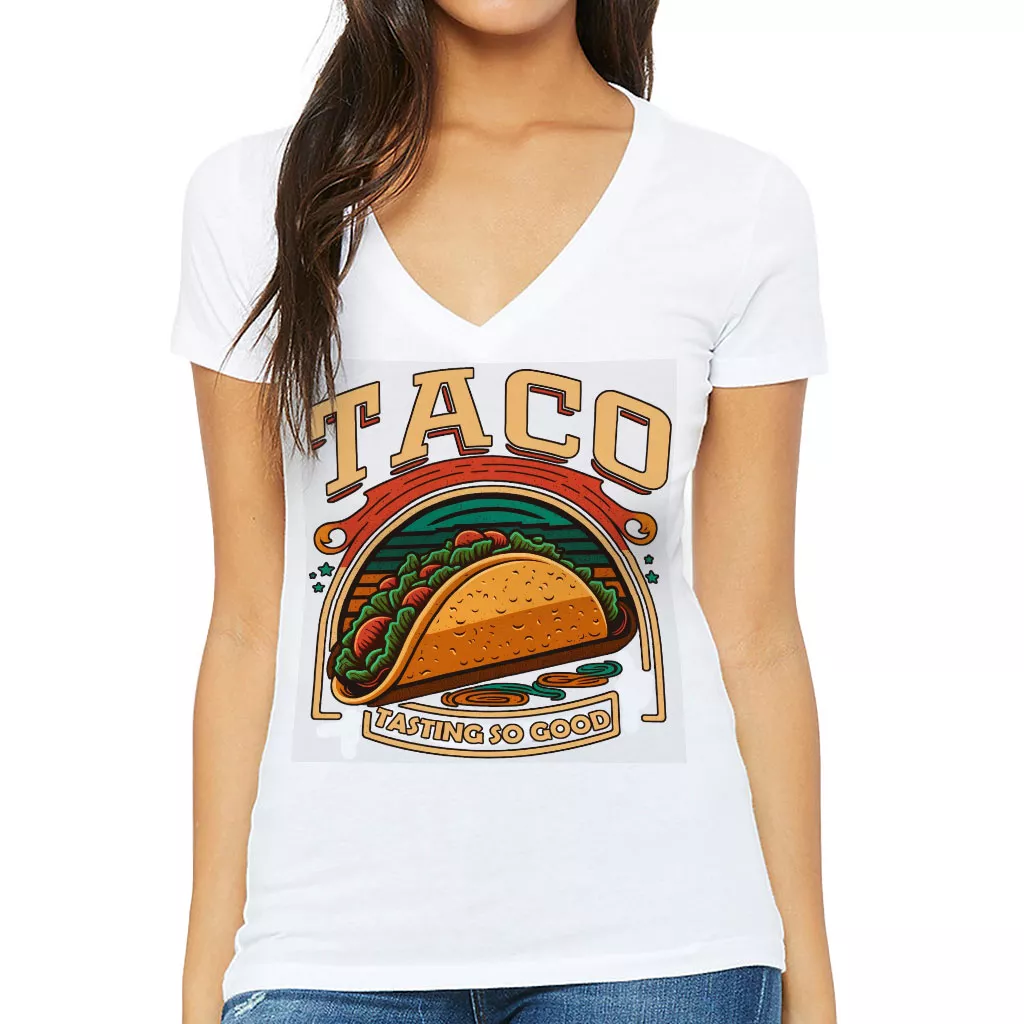 Taco Print Women’s V-Neck T-Shirt – Food V-Neck Tee – Cool Graphic T-Shirt