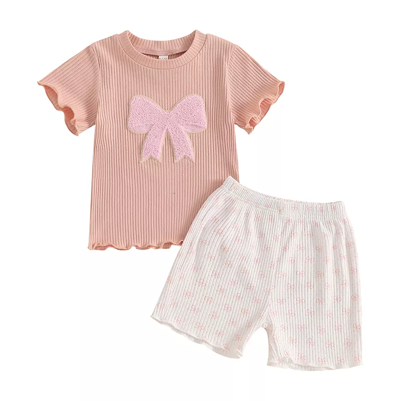 Dress your toddler in this charming summer set designed for both style and comfort. This two-piece outfit includes a soft, breathable short sleeve top featuring delightful bow and strawberry embroidery, paired with elastic waist shorts for easy wear and a perfect fit. Made from a gentle blend of 95% cotton and 5% polyester, this set keeps your little one cool and comfy during warm days while adding a touch of playful sweetness to her wardrobe.