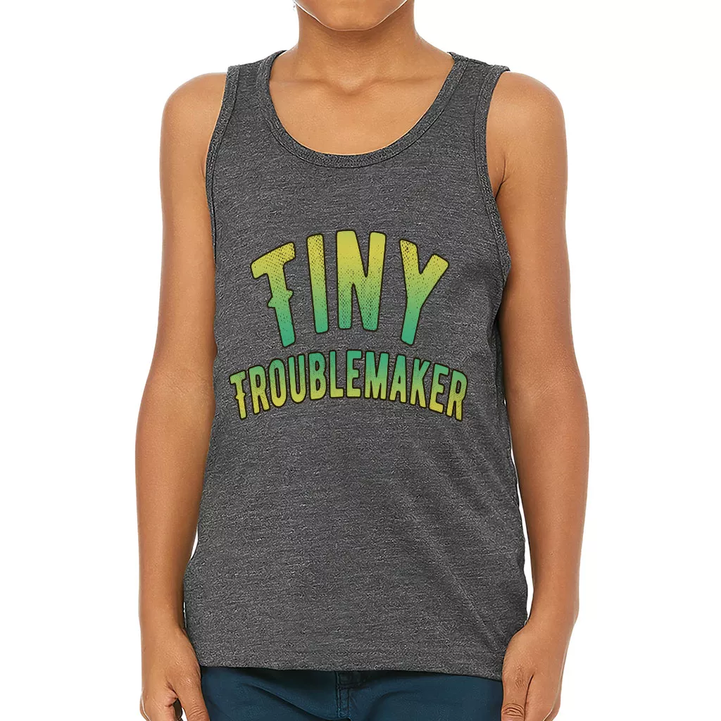 Troublemaker Kids’ Jersey Tank – Trendy Sleeveless T-Shirt – Cool Kids’ Tank Top
