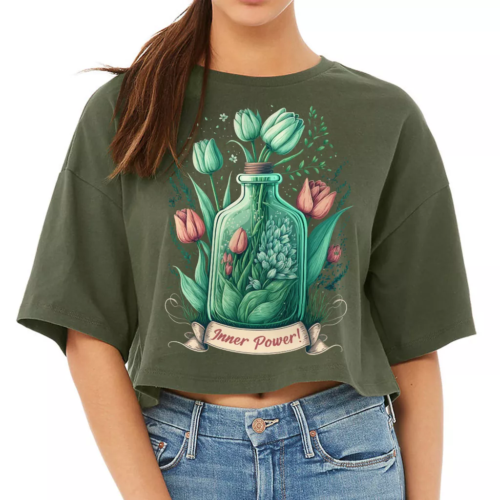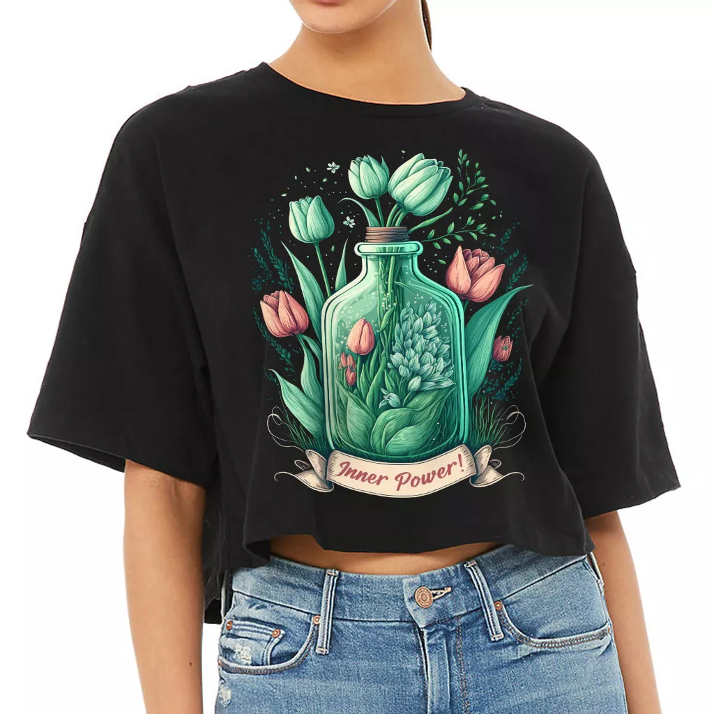Tulip Print Women’s Crop Tee Shirt – Inner Power Cropped T-Shirt – Colorful Crop Top