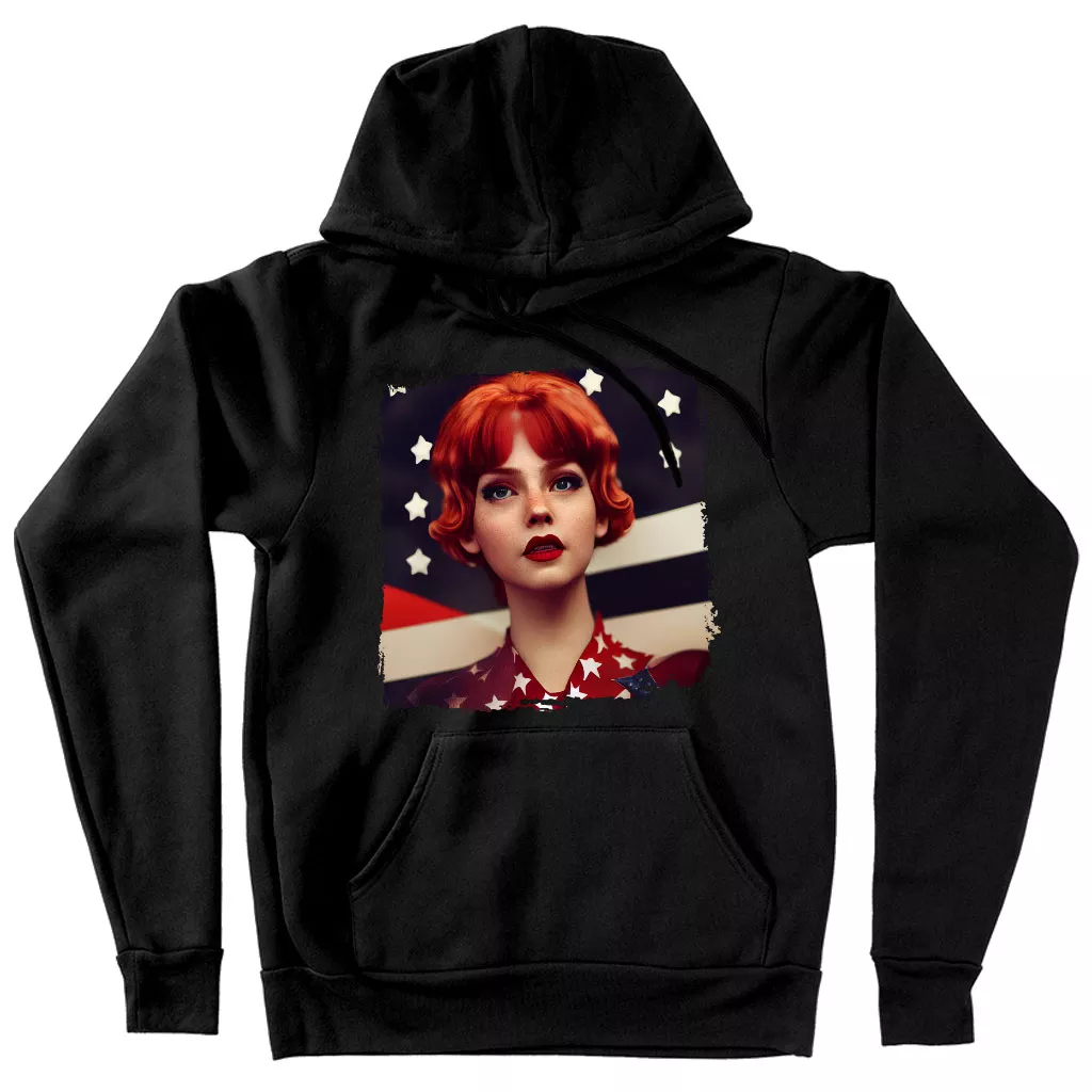 USA Flag Print Hooded Sweatshirt – Girl Art Hoodie – Patriotic Hoodie