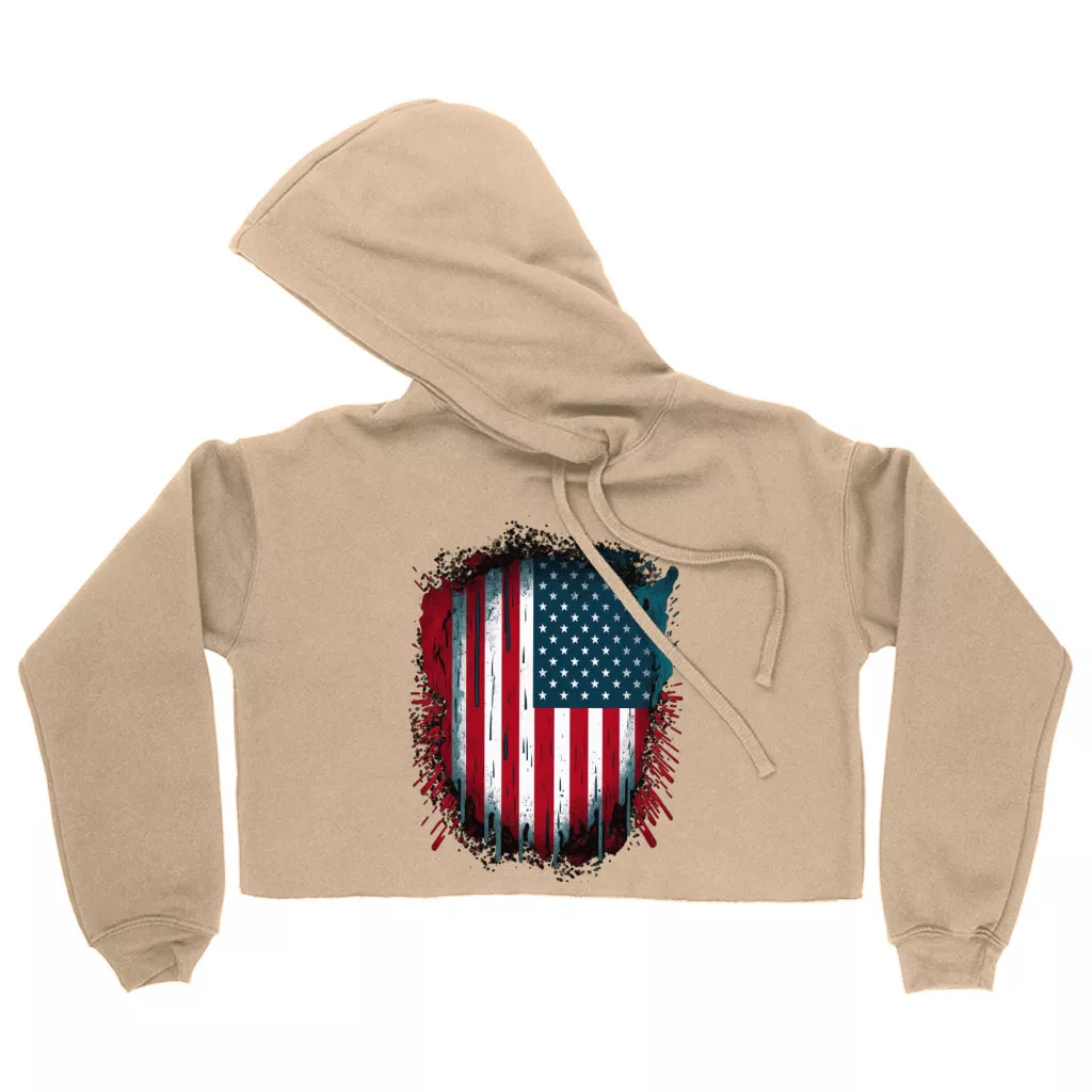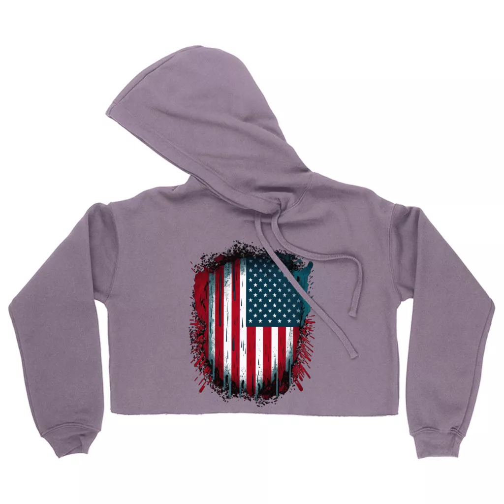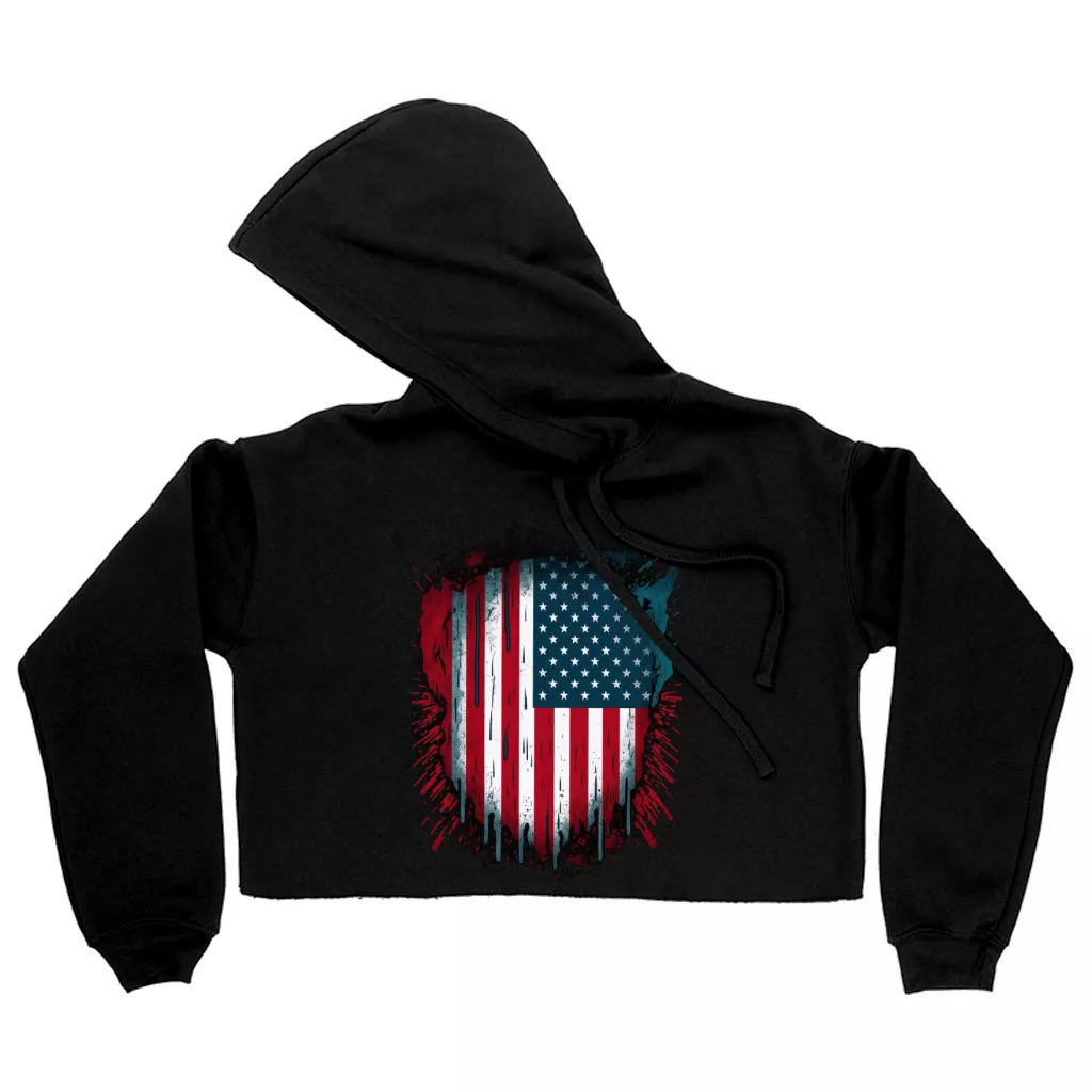 USA Flag Women’s Cropped Hoodie – Patriotic Cropped Hoodie – Cool Art Hooded Sweatshirt