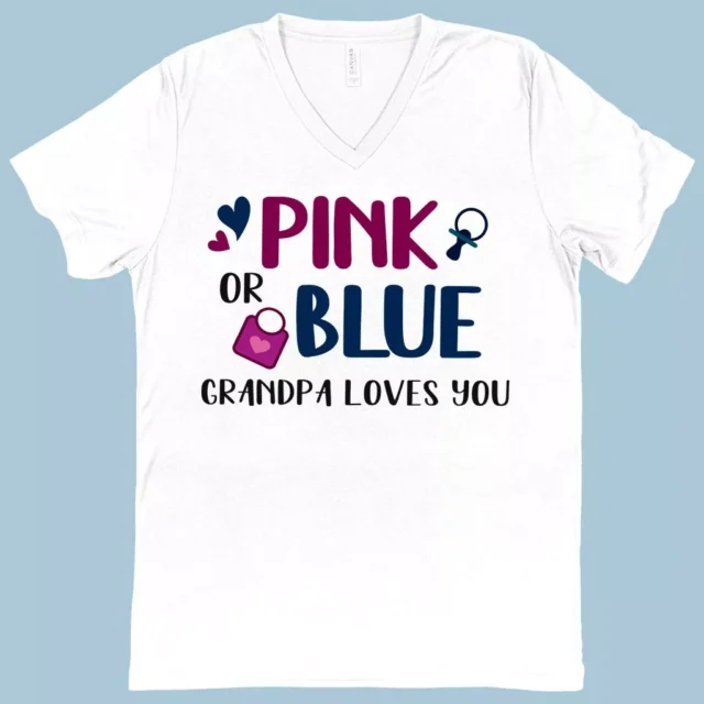 V-Neck Pink or Blue Your Grandpa Loves You T-Shirt – Gender Reveal T-Shirts for Grandparents – T-Shirts for Grandpa