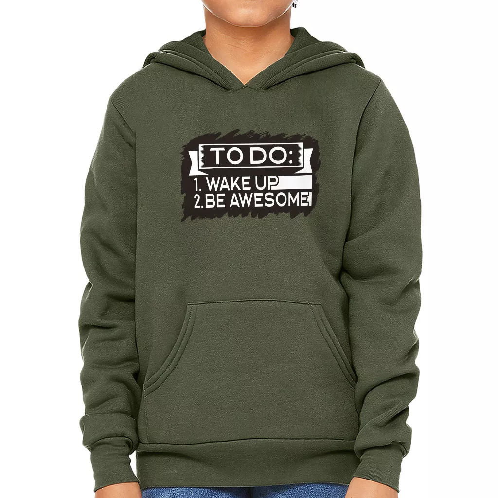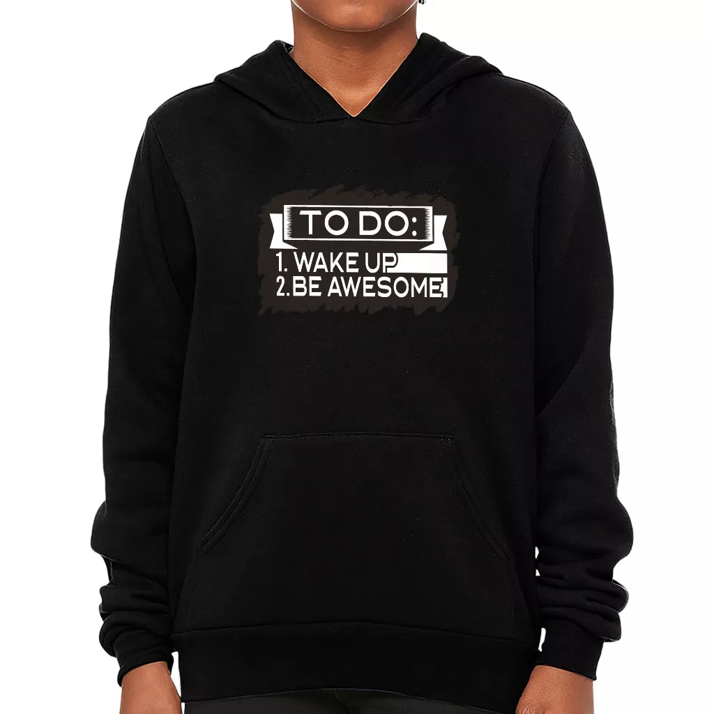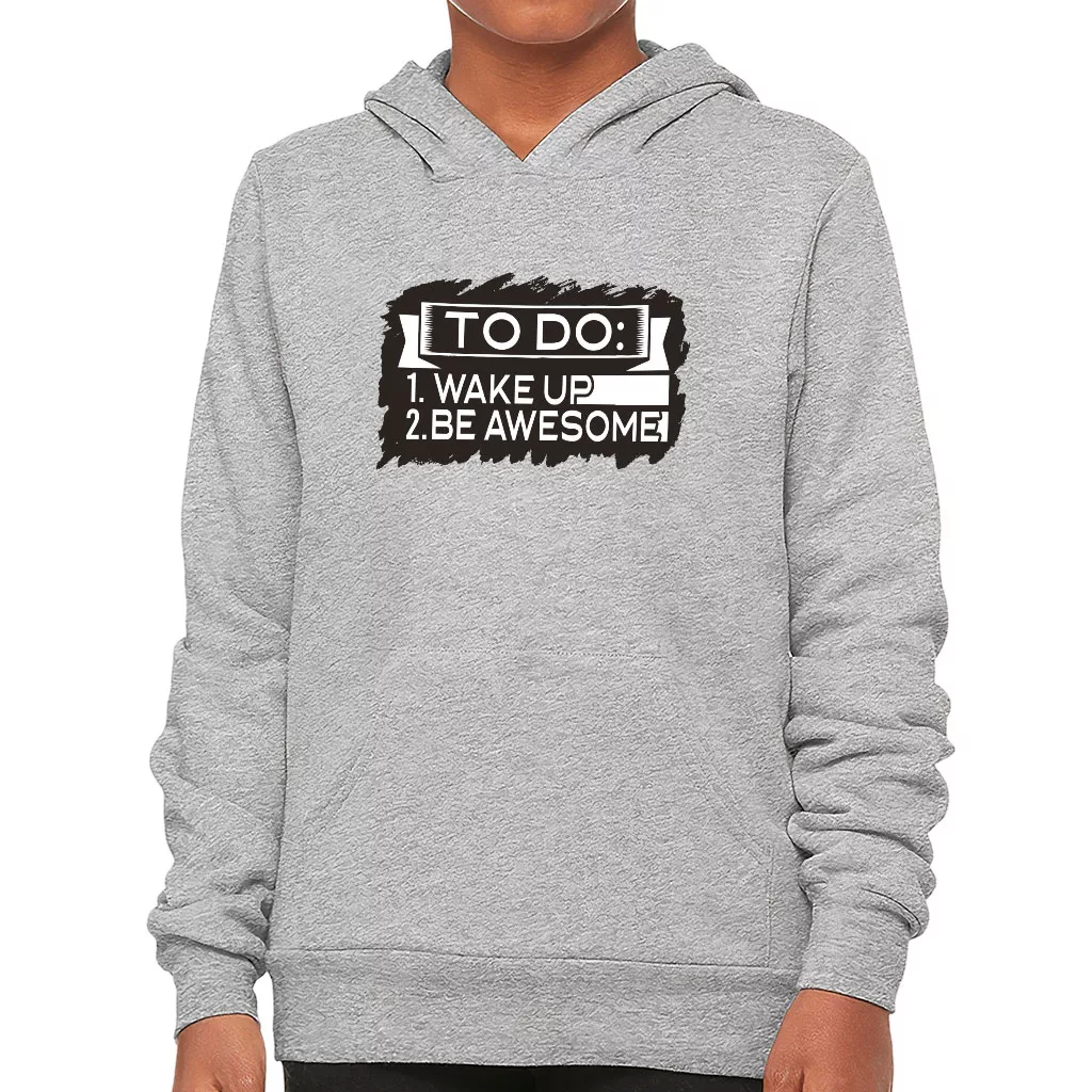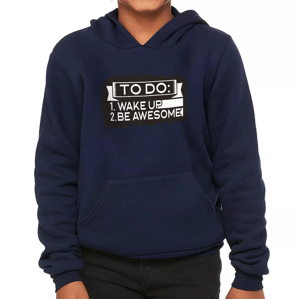 Wake Up and Be Awesome Kids’ Sponge Fleece Hoodie – Trendy Kids’ Hoodie – Funny Hoodie for Kids