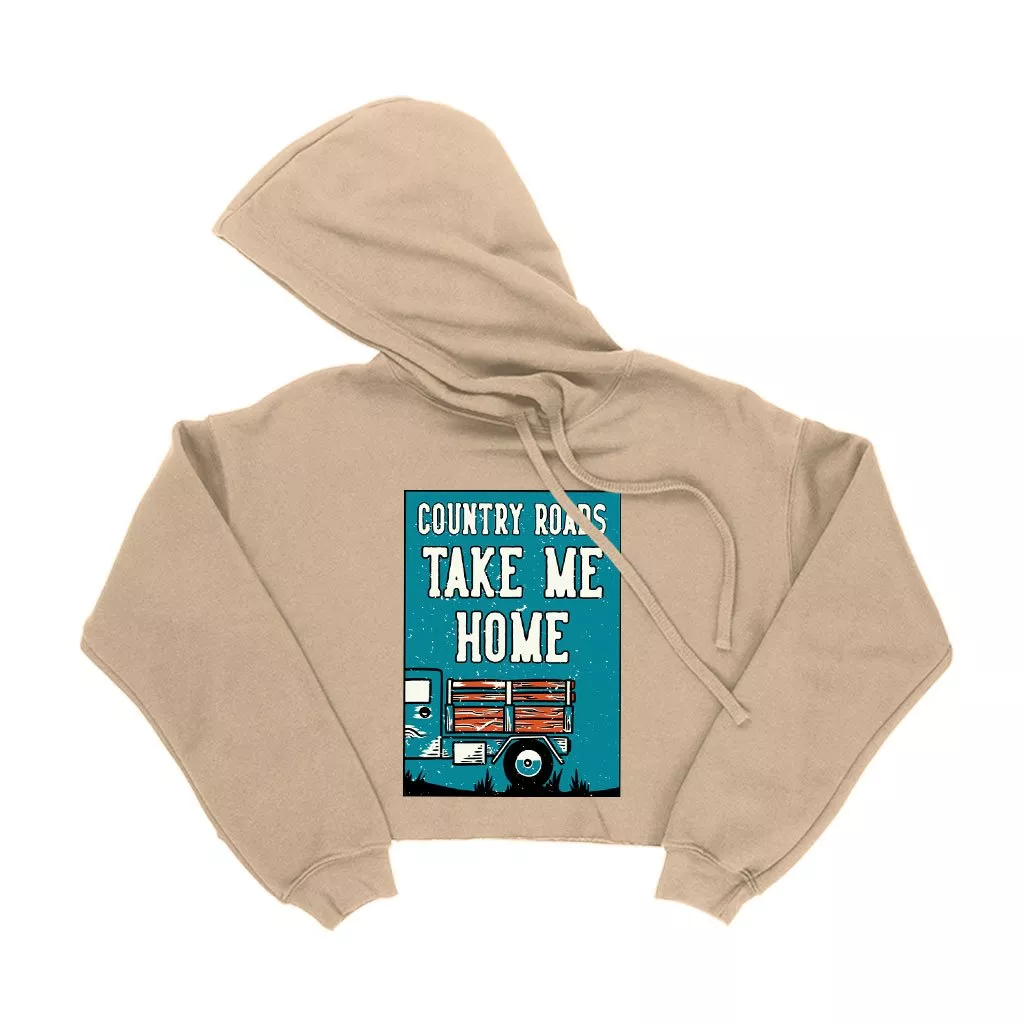 Women’s Cropped Fleece Country Roads Take Me Home Hoodie – Vintage Clothing