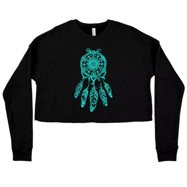 Women’s Cropped Fleece Dream Catcher Sweatshirt – Native American Print Sweatshirt
