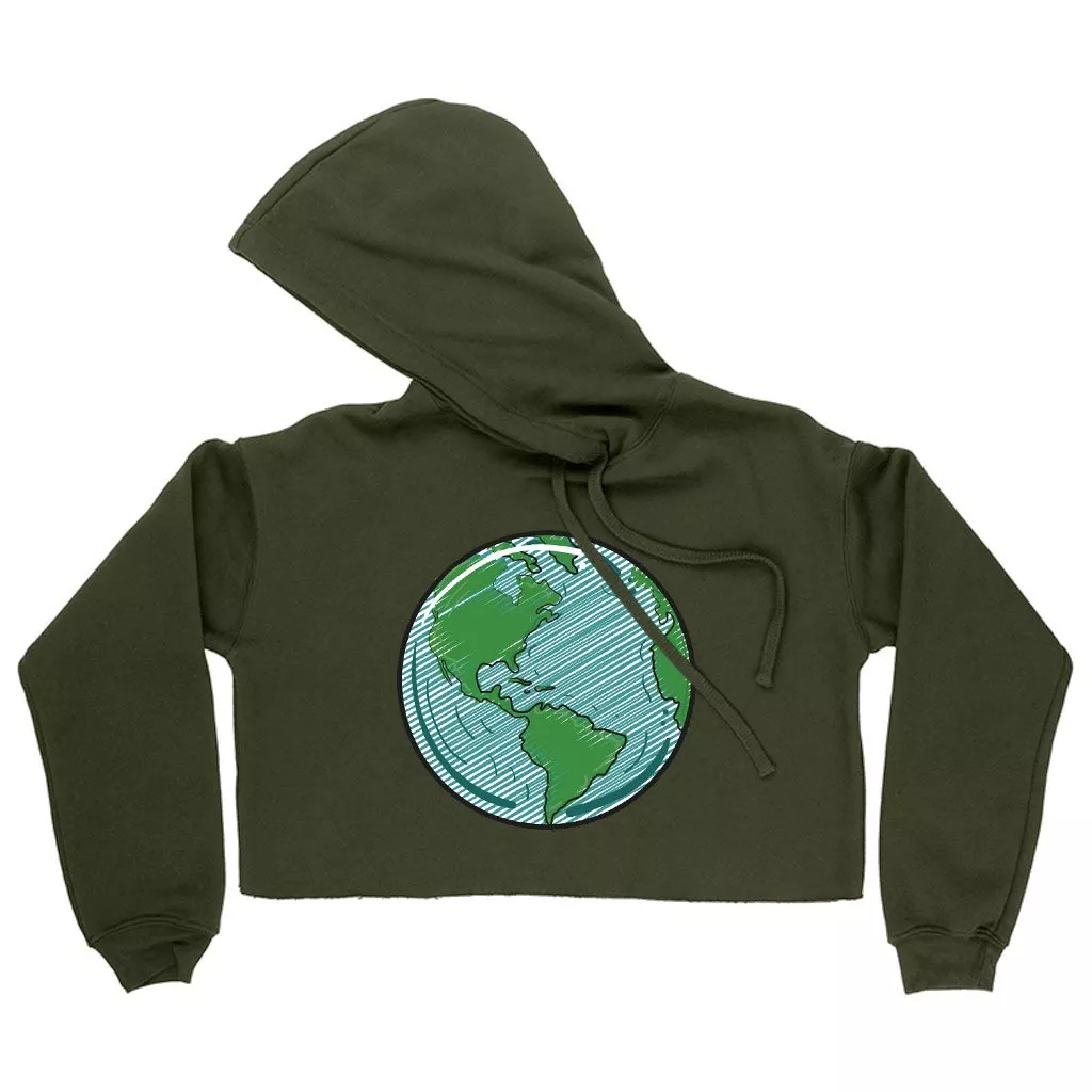 Women’s Cropped Fleece Globe Hoodie – America Hoodie