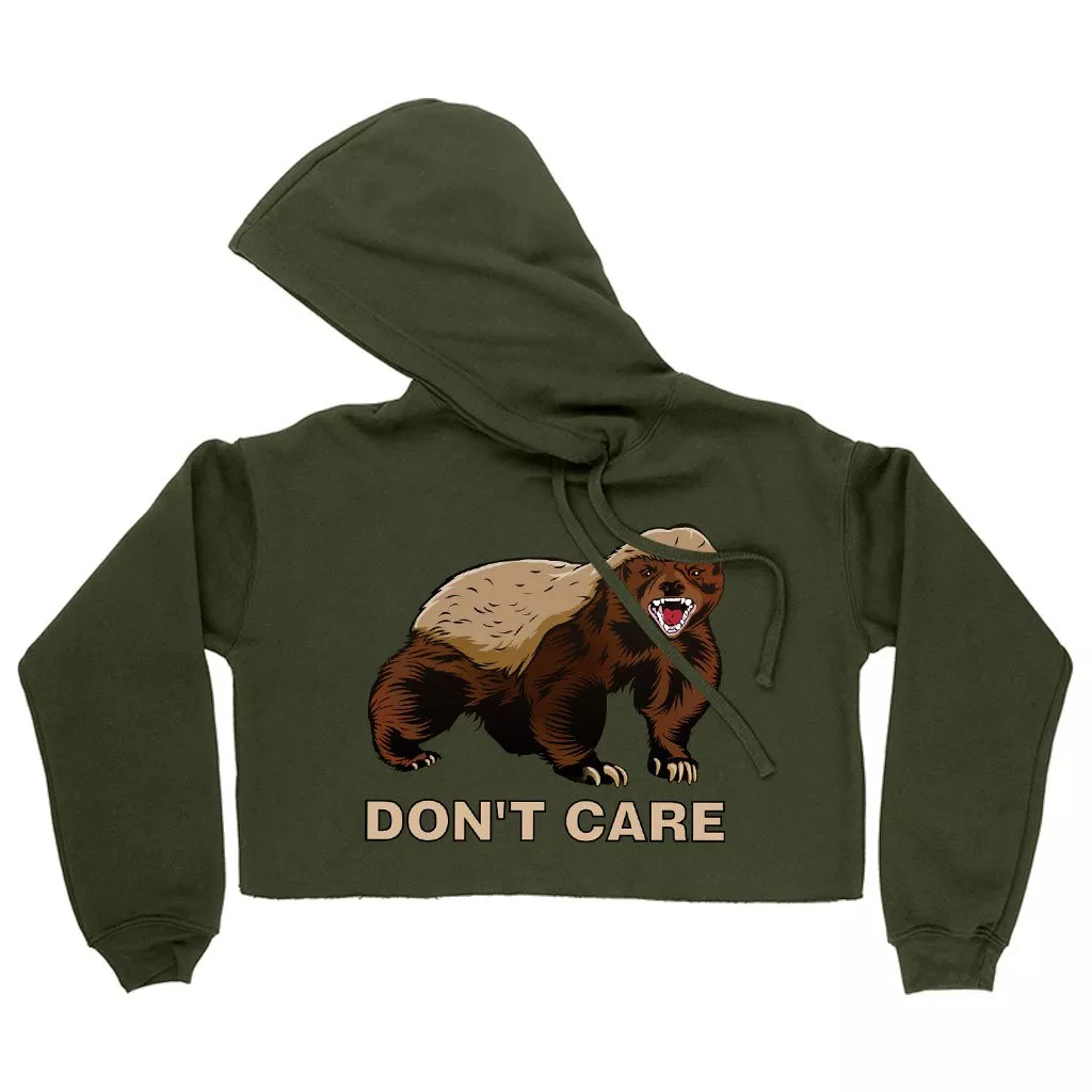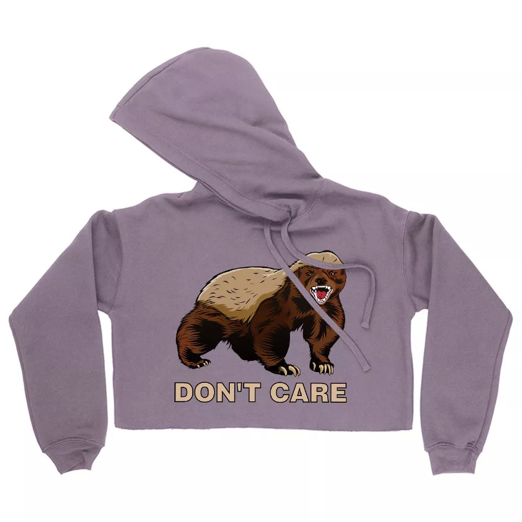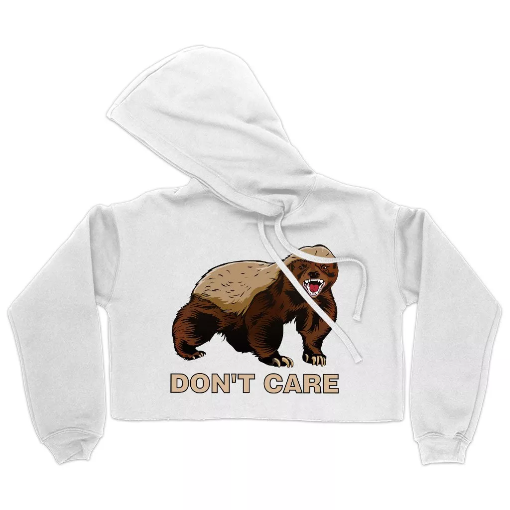 Women’s Cropped Fleece Honey Badger Don’t Care Hoodie – Funny Animal Hoodie