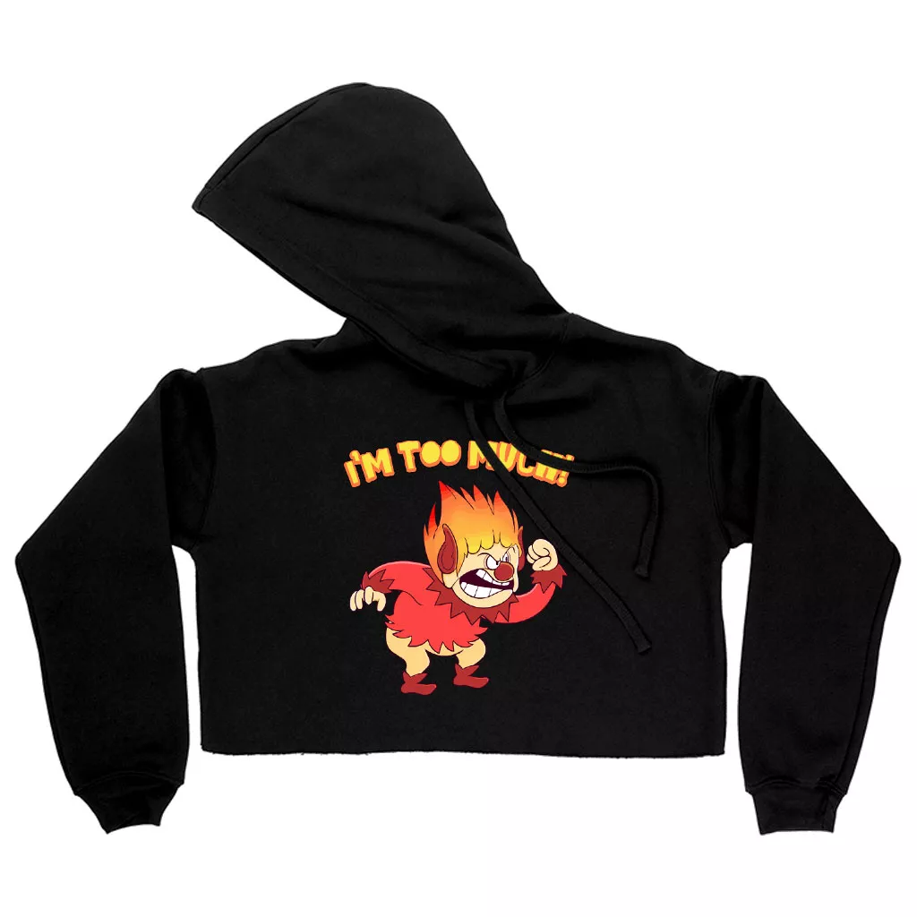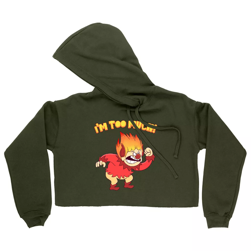 Women’s Cropped Fleece I’m Too Much Hoodie – Heat Miser Hoodie – Angry Hoodie