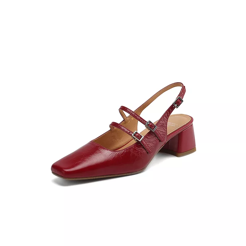 Women’s Genuine Leather Slingback Sandals with Square Heel