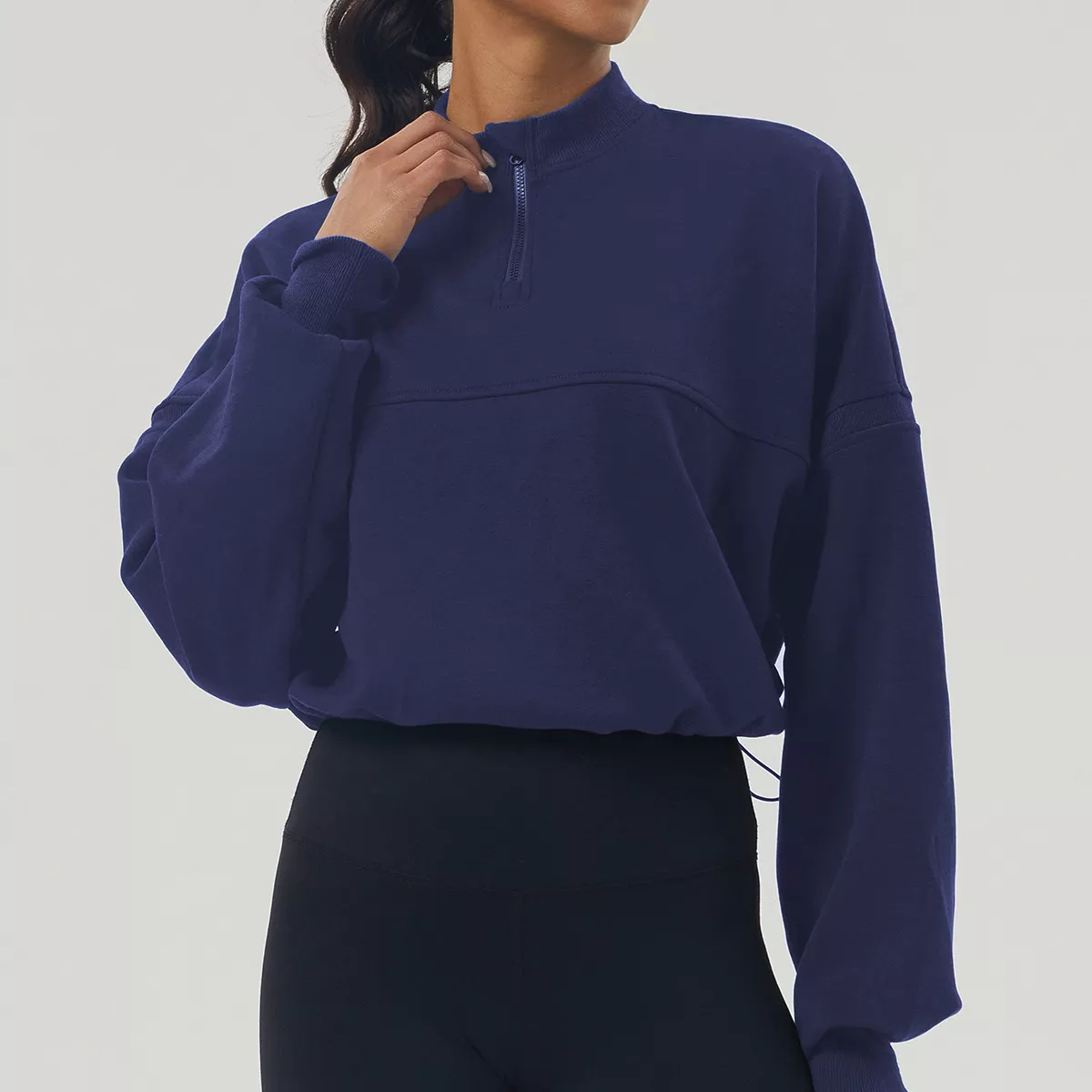 Designed for modern women who live life in motion, this half-zip cropped sweatshirt is the ultimate fusion of function, fashion, and freedom. Whether you’re hitting the pavement for a morning jog, stretching into a yoga flow, or simply relaxing on the weekend, this lightweight, breathable top is built to move with you. With a relaxed fit and flattering cropped length, it’s as chic as it is comfortable.