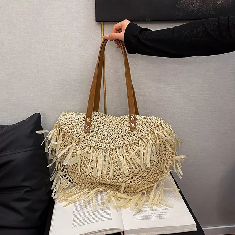 Elevate your everyday look with this beautifully handwoven knit shoulder bag designed for women who appreciate both style and practicality. Crafted from durable straw with a hollowed-out braid pattern, this casual tote is the perfect blend of bohemian charm and modern fashion. The delicate tassel detail adds a playful touch, making it a must-have accessory for beach days, shopping trips, or casual outings.